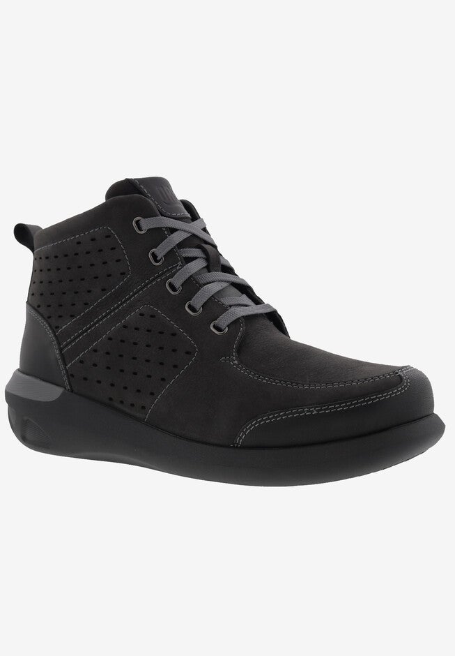 Drew Murphy is a mens casual, yet comfortable ankle boot that combines sleek styling with a host of foot health benefits. These Drew therapeutic shoes offer two removable insoles. Keep both in for added depth or remove one for double-added depth. The Drew Walkright Technology(TM) Footbed offers a stability heel cradle and shock absorbing heel cushion. Drew Murphy provides an extended heel counter for lateral stability, as well as a lightweight steel shank for added support.
