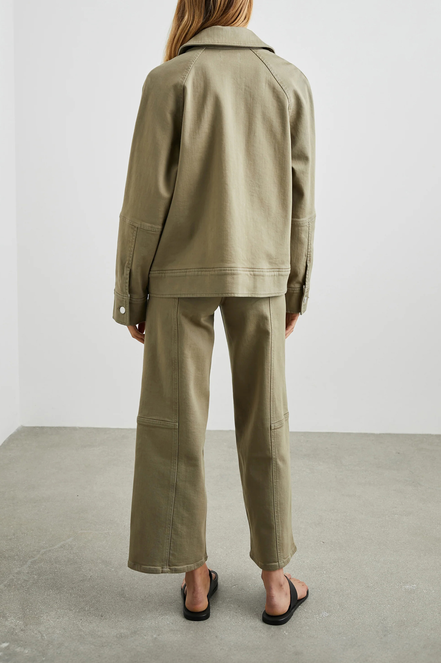 The jacket is your easy to layer, throw-on-and-go jacket. It is unlined with a full zipper front. Washed Olive is the perfect vintage green color.