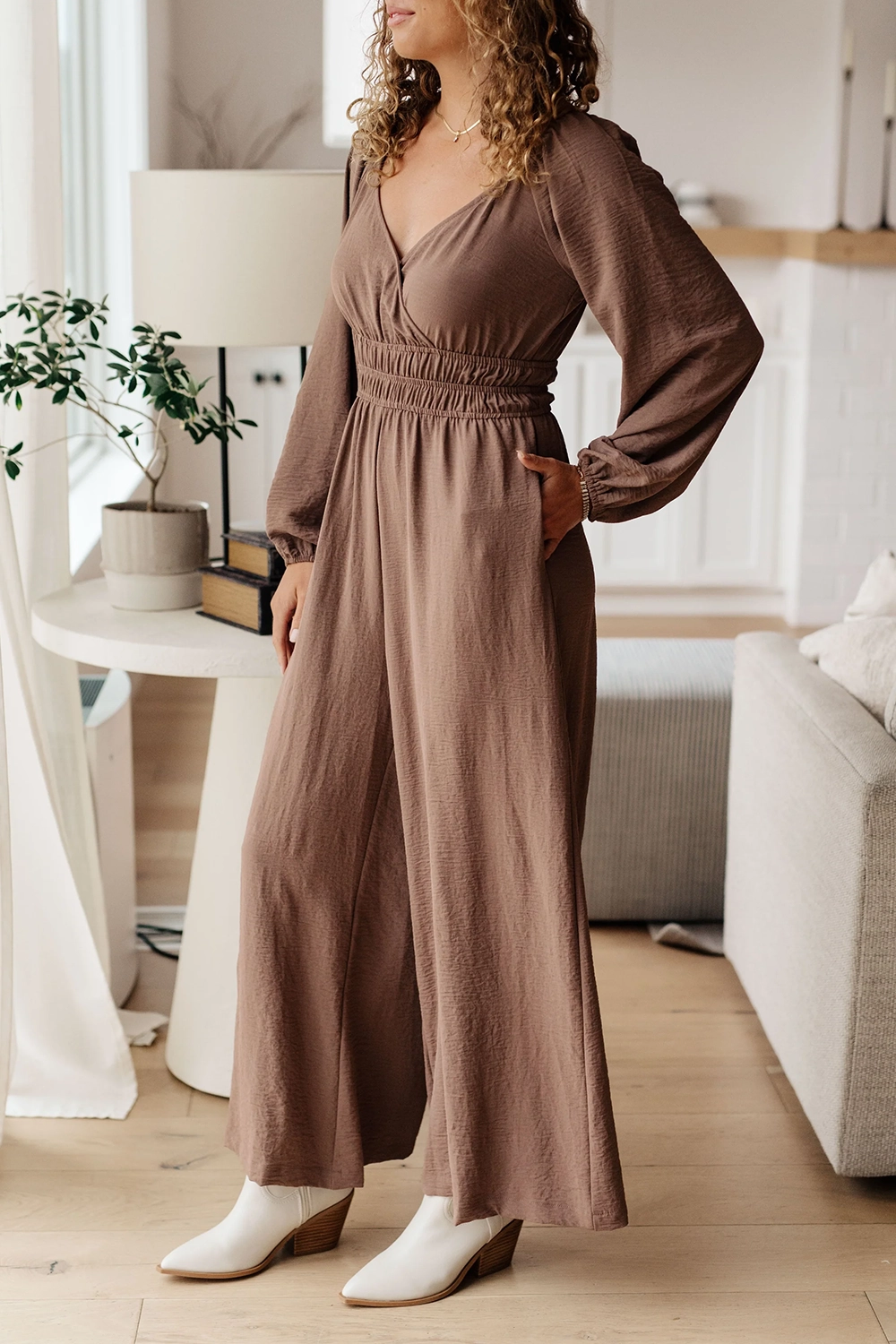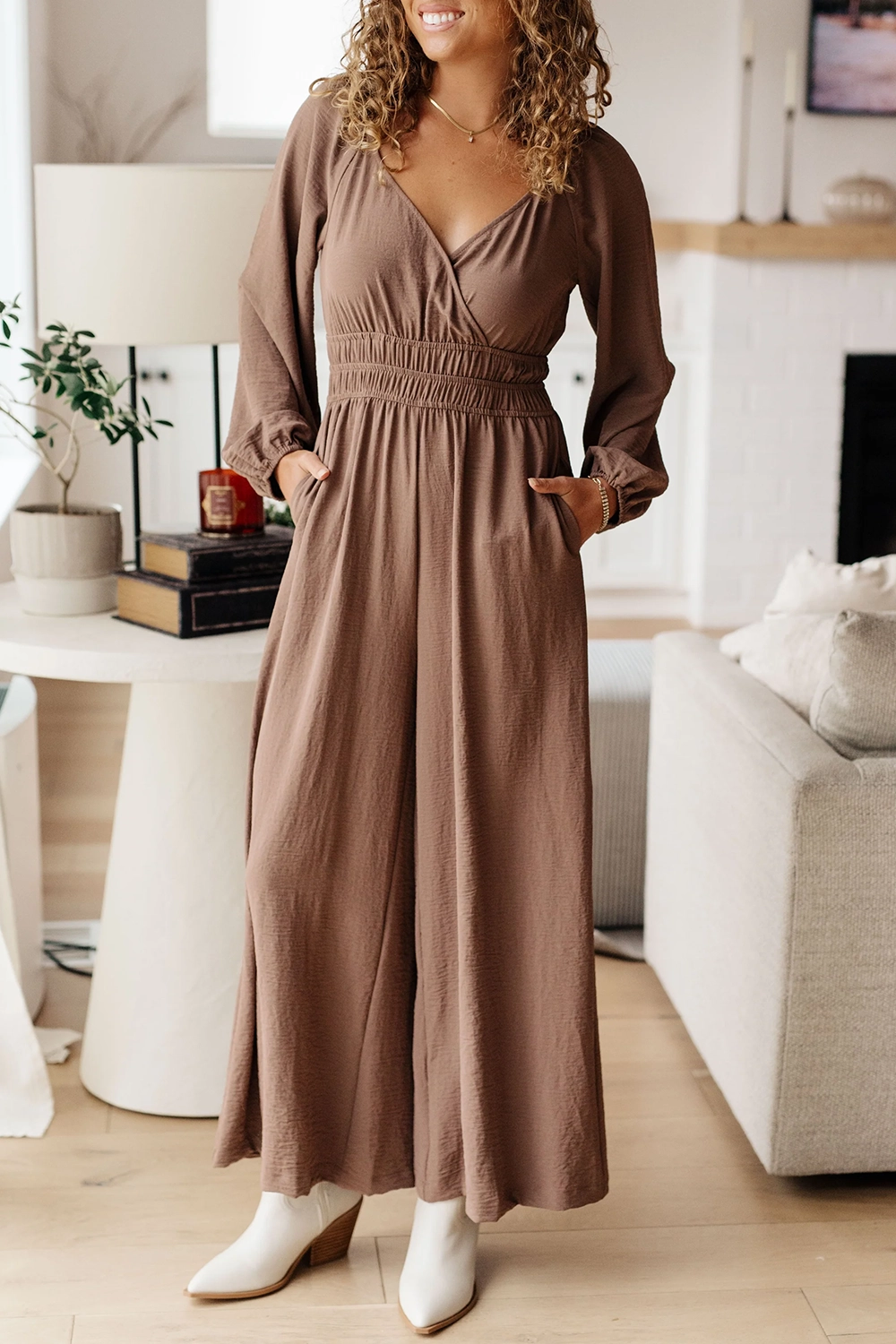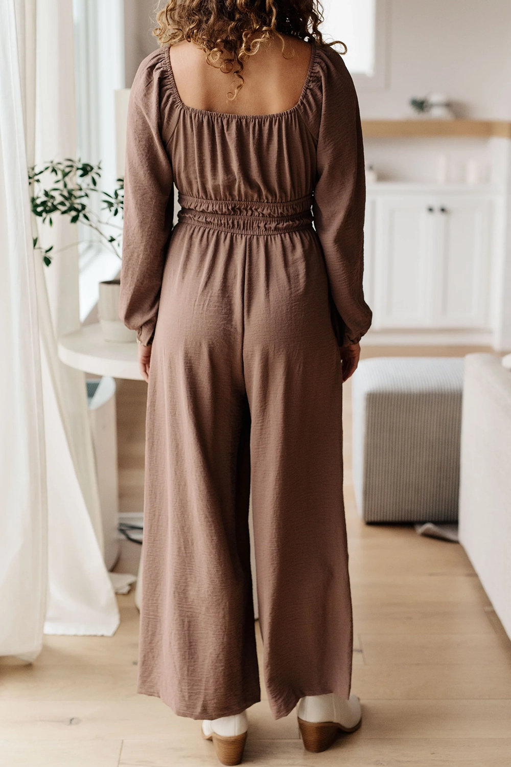 Brown Comfortable Waist-Cinching Jumpsuit 787665