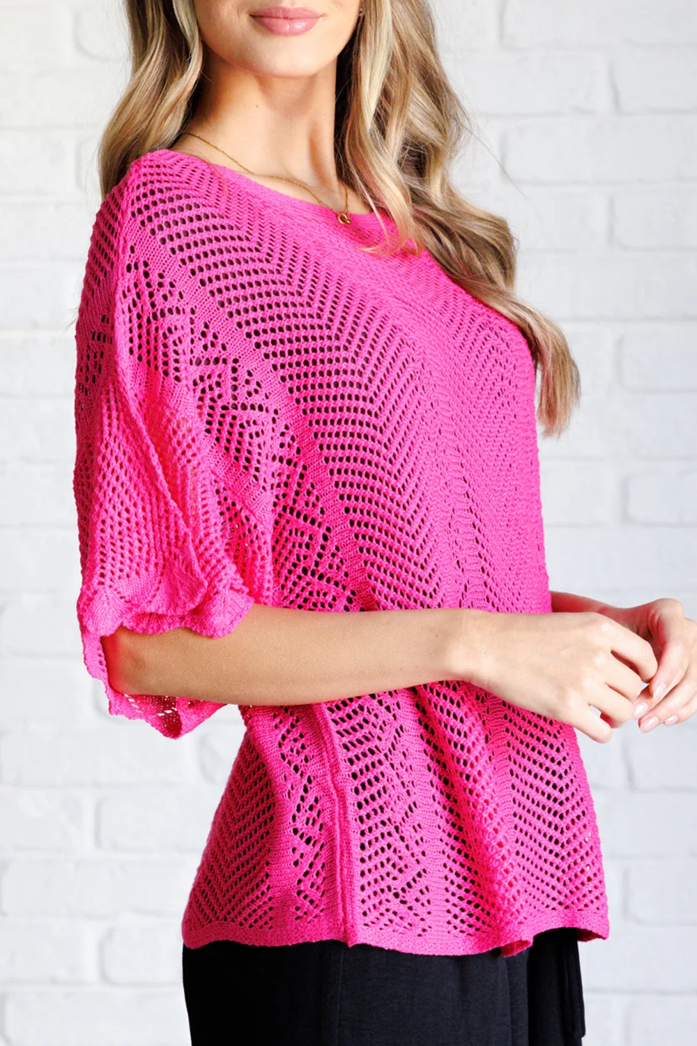 Classic Pink Simple Temperament Knitted Top 787911