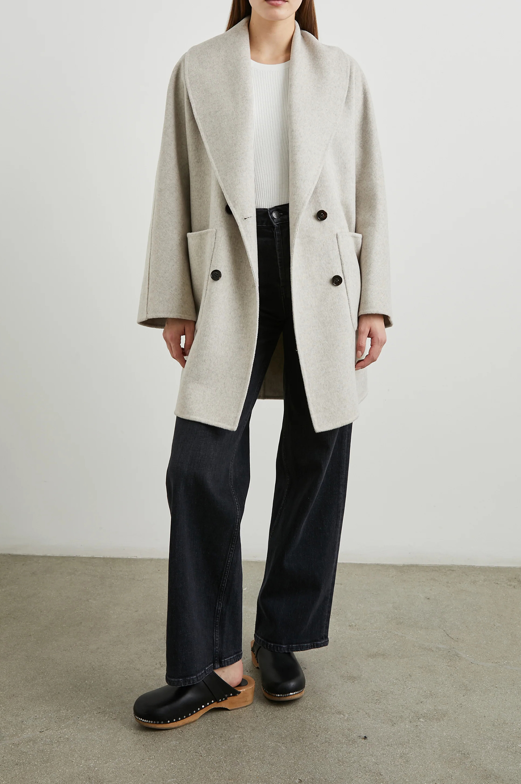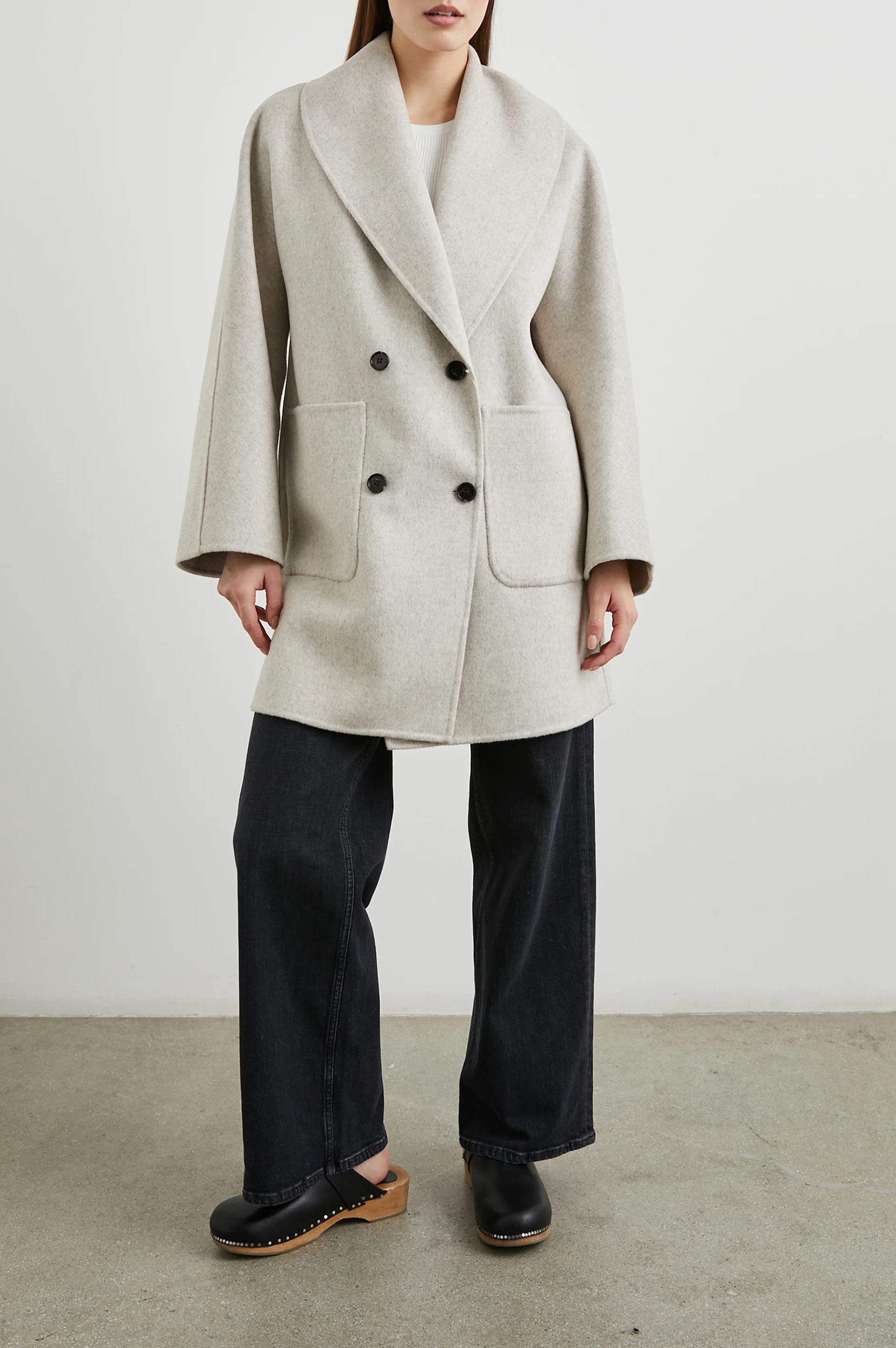 Your classic outerwear gets an upgrade with the coat, the heavy wool blend, double-breasted coat that’s bound to be your new go-to. With two statement patch pockets and a knee-length fit, this is your layering piece for the season.