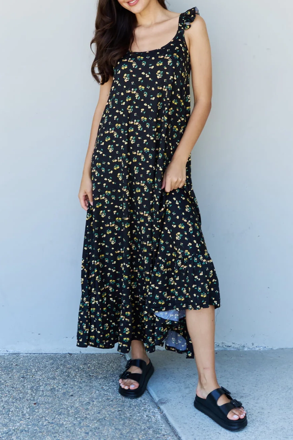 Elegant Black Temperament Floral Long Dress 787551